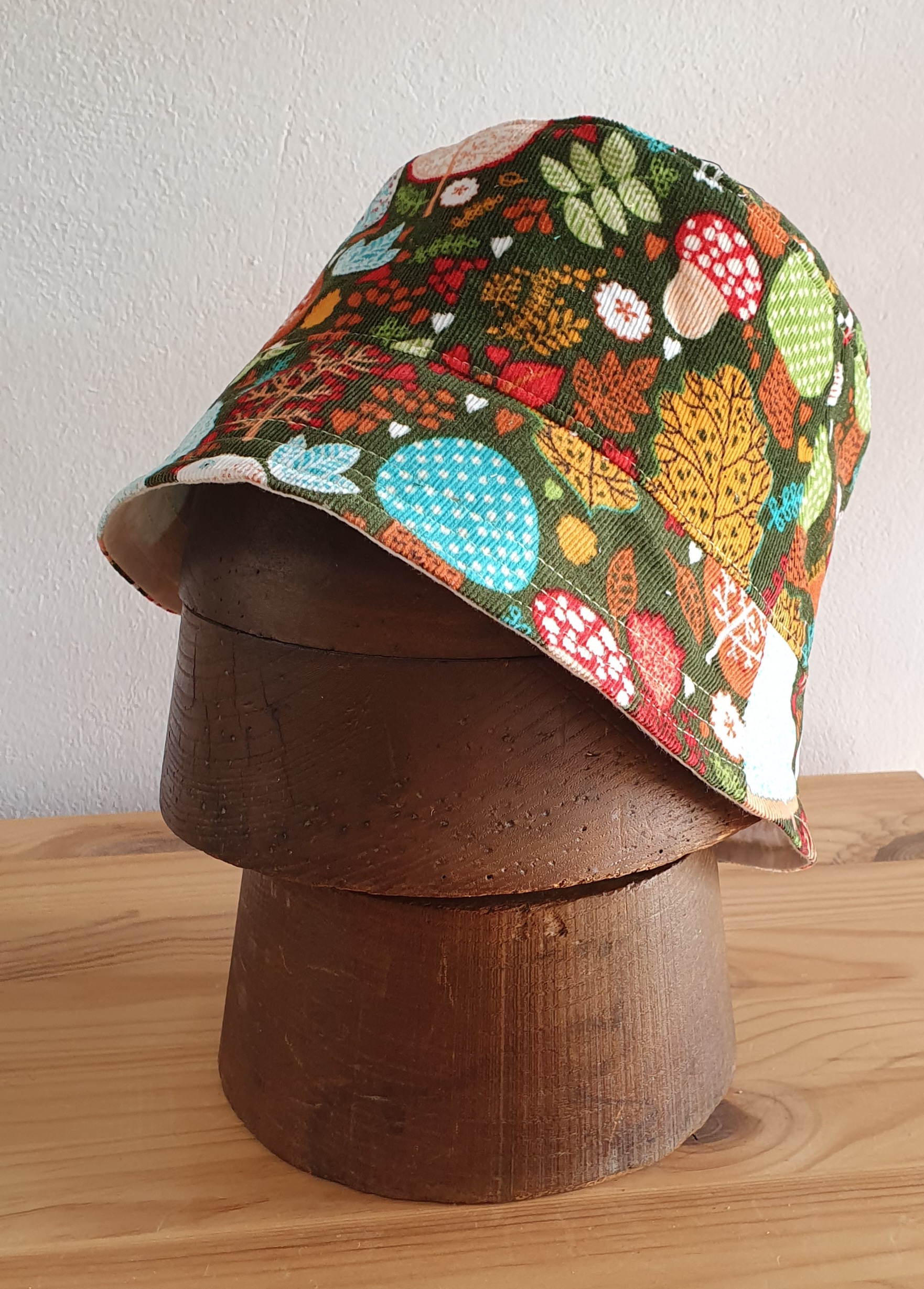 Unika. Baseret på reststof. Blomstret sommerhat til børn i fløjl. Omkreds: 52 cm.